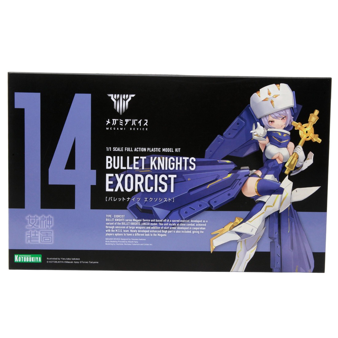 Height (approx.): 150mm | 5.91"“Megami Device” is a plastic model kit series combining Bishoujo-style beauties and heavy-duty weapons and armor. Each character has a main body, or “machinika,” designed by Masaki Apsy along with a huge array of interchangeable parts to outfit her as you like! The latest character to join the series is BULLET KNIGHTS EXORCIST, based on character art by Yasutaka Isegawa!